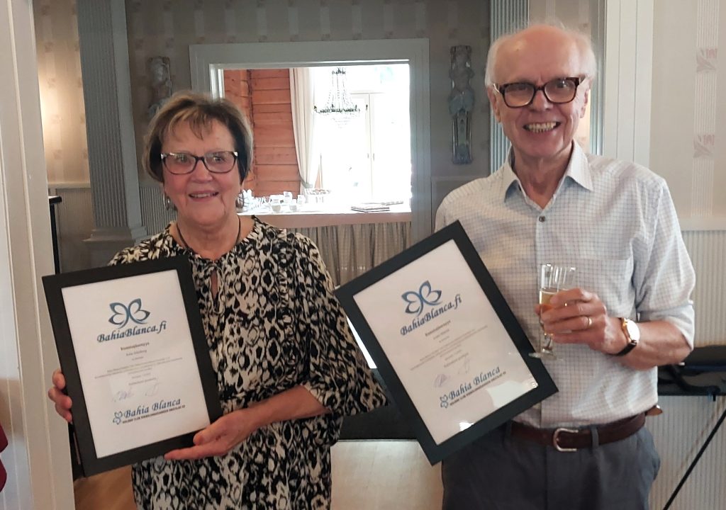 Hallitus kutsui samalla Bahia Blanca Holiday Club Viikkolomaosakkeen omistajat ry:n kunniajäsenekseen Kaijan ja monta vuotta sihteerinä toimineen Jouko Mäkilän. Olette todellakin ansainneet kaiken kiitoksen ja kunnioituksen, joka teille kokouksessa osoitettiin!